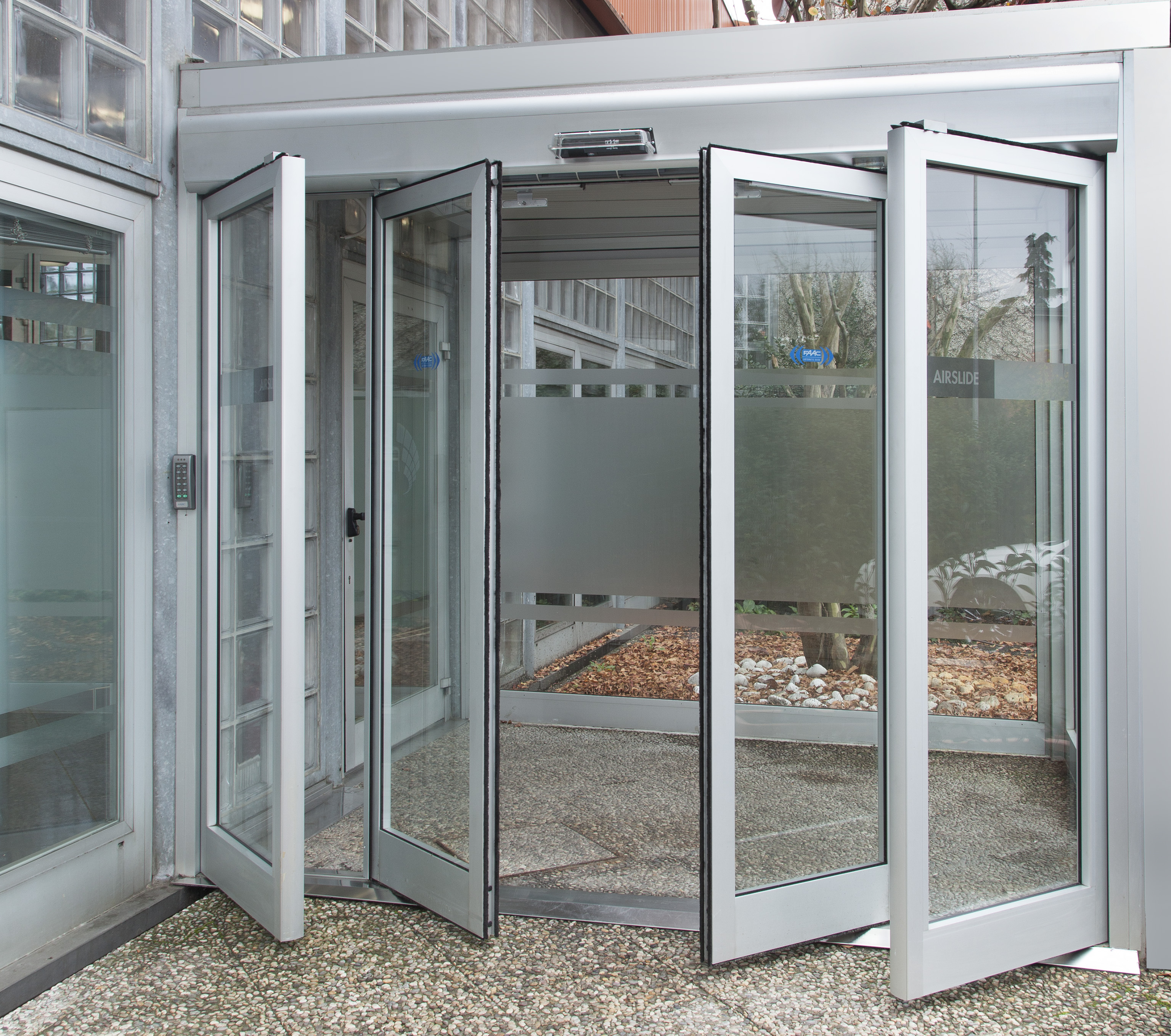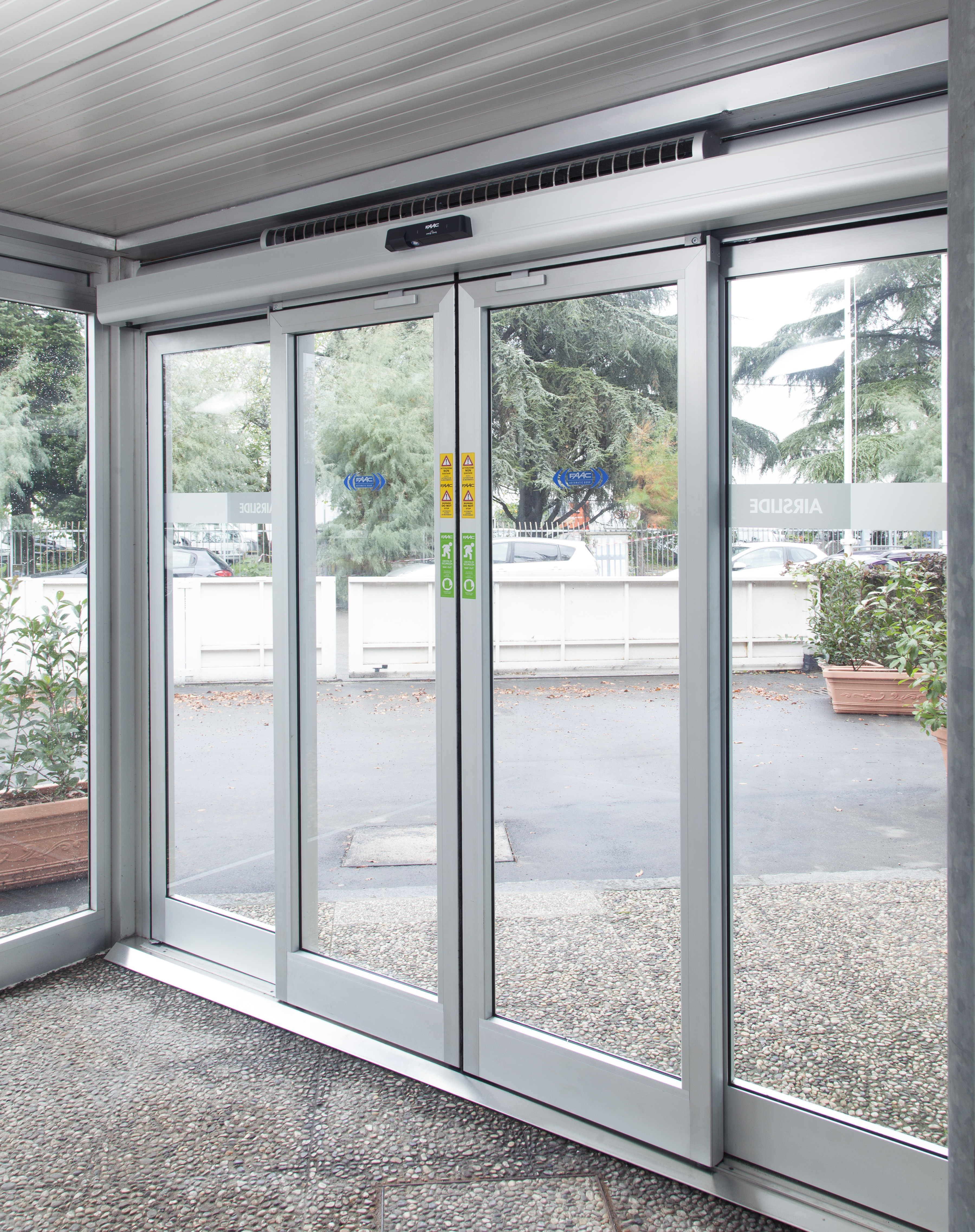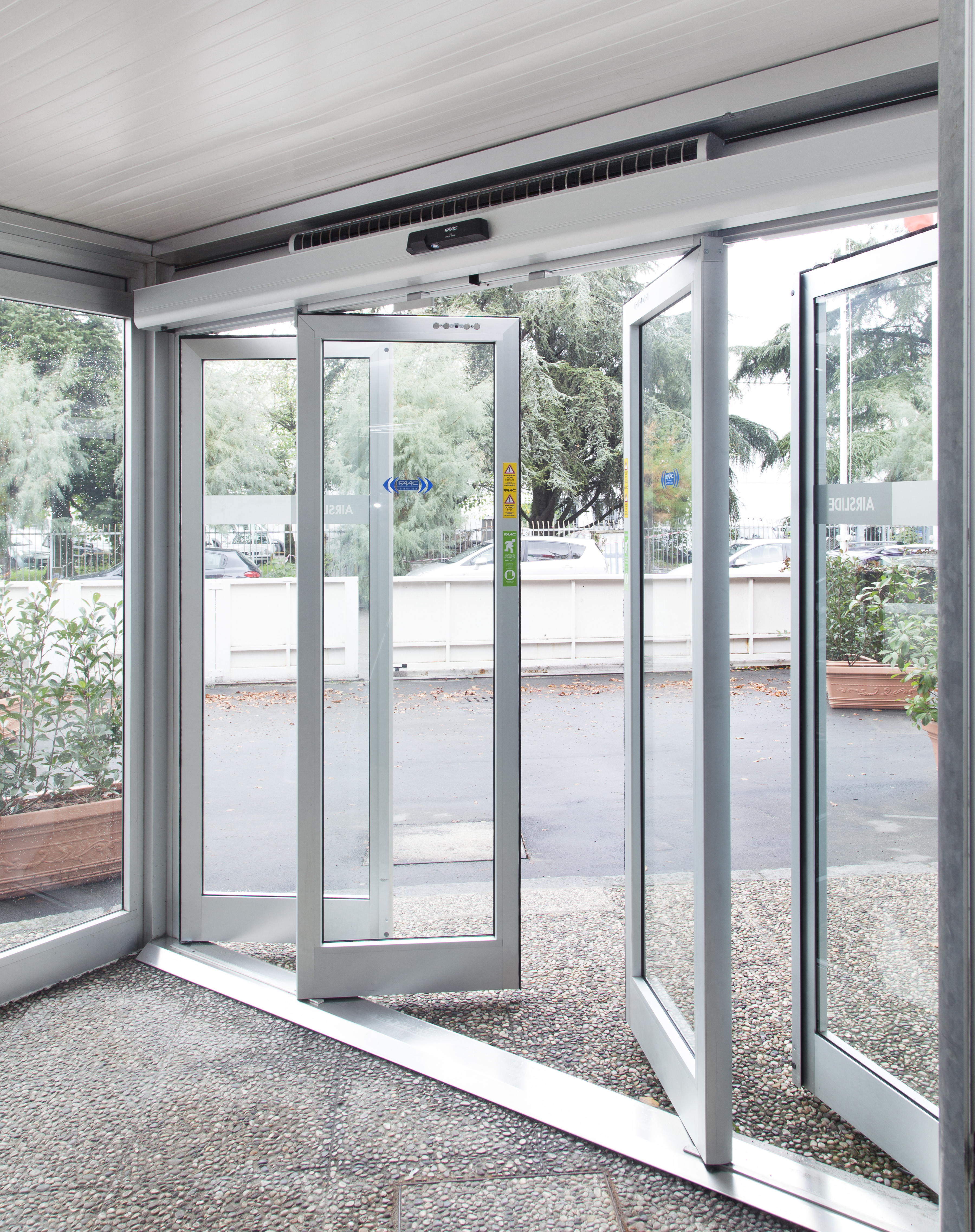 Автоматичні двері складаються з міцної самонесної конструкції з екструдованого алюмінію. Новий дизайн полегшує монтаж зовнішніх датчиків . Вентиляторний вузол має спеціальну конструкцію,яка полегшує демонтаж під час технічного обслуговування . Якщо двері використовуються разом з автоматикою FAAC серії A1400 AIR, вона розпізнає напрямок руху людини й чудово оптимізує час відчинення/зачинення, запобігаючи в такий спосіб витоку повітря, навіть у разі перехресного руху, завдяки інноваційному енергоощадному (Energy Saving) пристрою. ХАРАКТЕРИСТИКИ: енергоефективність до 62 %, якість повітря до 62 %, покращений мікроклімат до 48 %